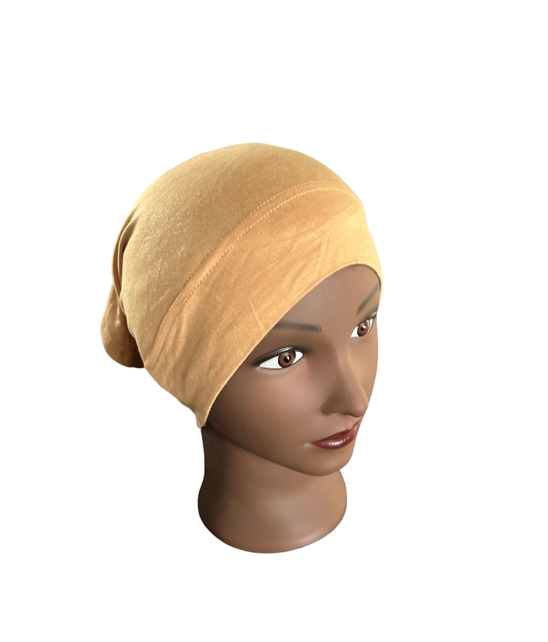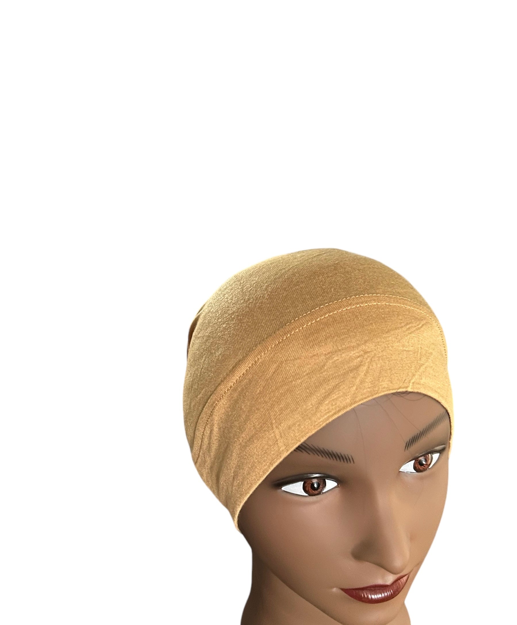 Hijab under cap.
